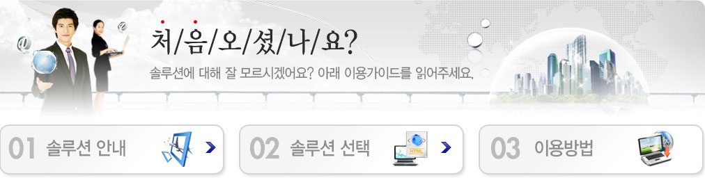 솔루션유형이 정해지셨다면 상단 솔루션 통합검색창을 이용해 원하시는 솔루션을 검색하시거나, 분류에서 찾으시면 됩니다.